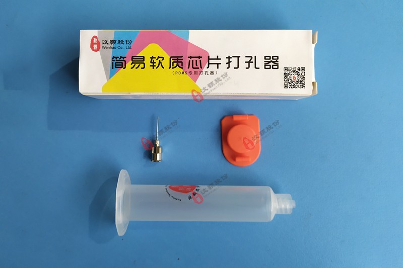 PDMS芯片簡易打孔器是我司自主開發(fā)的簡易PDMS芯片加工工具,由中空針頭、手握管體、頂端堵頭等三部分組成。其中中空針頭經(jīng)過機械倒角打磨處理,非常鋒利,該結(jié)構(gòu)類型決定了其PDMS芯片孔徑與針頭內(nèi)經(jīng)一致。
